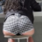 お尻もスカートが丈が短すぎるのか、ケツがデカ過ぎてずり上がるのか、
