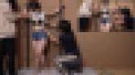 オジサンたちはくすぐり隊, お尻, フェチ, 巨乳, 美脚立ち状態で両手を繋がれたボーイッシュなお姉さん。 オジサン達2人が小道具を選んでいるのを上からドキドキしながら見ていますww なるべくくすぐられてる箇所を見ないように努力しているのが見てわかりますが時 …