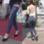 美*パンティーライン通信*エスカで見るピタピタに張り付いたストレッチデニムに浮かぶリアルPライン