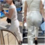 【デカ尻お姉さんの街歩き】☆白パンツに浮かび上がる喰い込みTバックと熟れた巨尻!